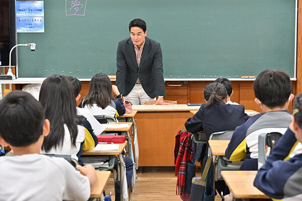「ゲームの時間」終了後は各教室へ移動し、夢先生による「トークの時間」になります。ここでは夢先生が夢を持つことになったきっかけや、それを実現するためにどんなことに取り組んだのか、といったことを子供たちに紹介。