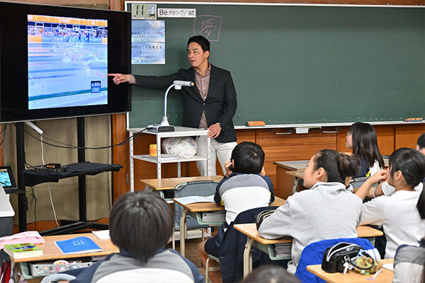 きらぼし銀行による寄附講座、トップアスリートから夢を持ち、努力することの大切さを学ぶ「夢の教室」に5年生が参加しました。