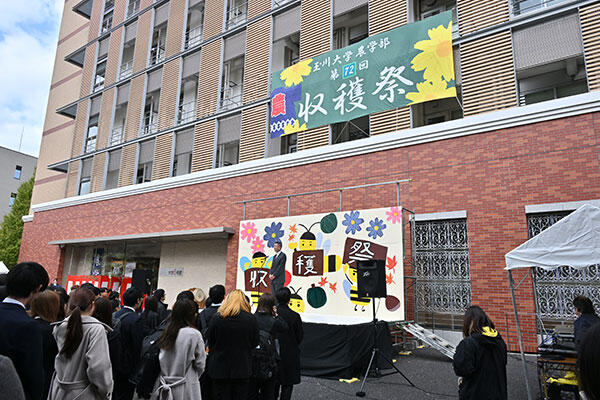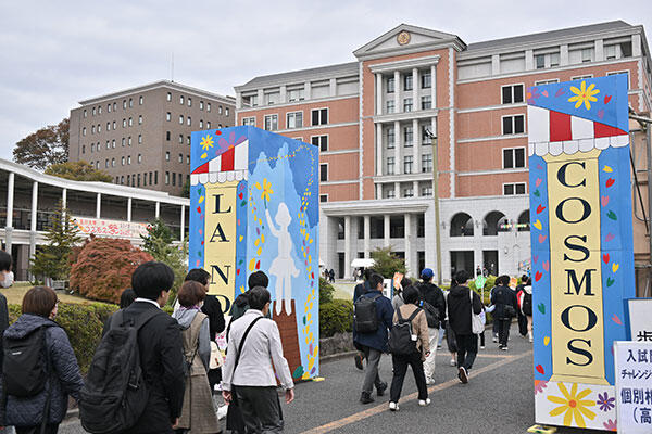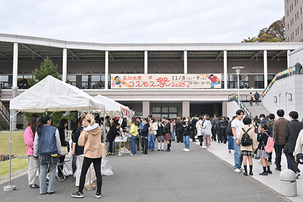 11月8日(土)、9日(日)の2日間、「玉川大学 コスモス祭2025」が開催されました。 ギリシャ語で整備や秩序、調和を意味するコスモス。その名の通り、コスモス祭は「学部展」や「収穫祭」といった各学部の研究活動の発表や、クラブの「課外活動展」などを統合する形で行われる、玉川大学の一大行事です。本年度のテーマは「COSMOS LAND」。コスモス祭に携わる人がコスモスの花びらとなり、手を取り合って一つの花を作り上げようという想いと、たくさんの人がワクワクする世界になるようにという想いが込められています。二日目は時折雨の降るあいにくの天候でしたが、両日とも多くの学生や卒業生で賑わいました。