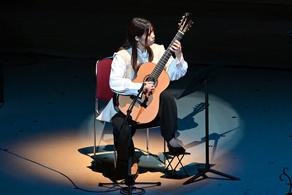 そして、クラシックギタリストで卒業生でもある芸術学部 飯野なみ講師のギターで「きよしこのよる」を歌い、祝福の祈りとアーメン・コーラスで礼拝を終えました。