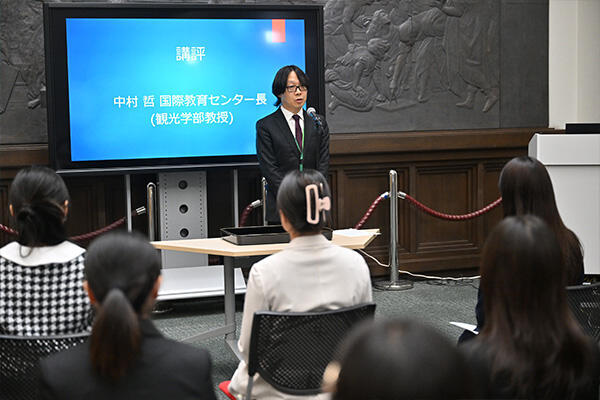 表彰式の後、中村哲国際教育センター長(観光学部教授)からの講評がありました。