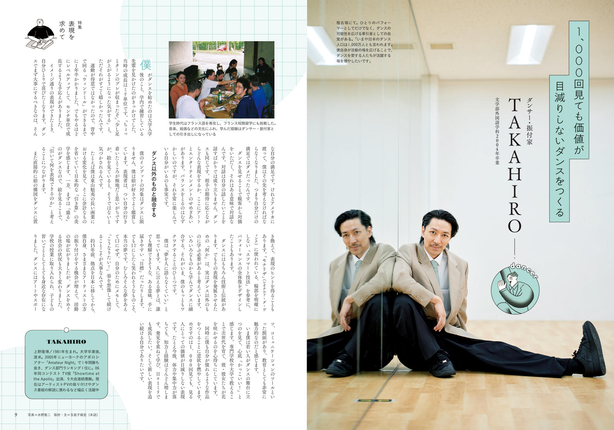 10月号の巻頭特集は「表現を求めて」。玉川が12の教育信条のひとつに掲げる「個性尊重」は、自己表現の探究を支えることで一人ひとりをより魅力的な人間へと高めることを目指しています。本特集では陶芸、演技、ダンス、ファッション、書、イラストレーションの世界で表現活動にとりくむ6人の卒業生にそれぞれインタビューしました。「研究エッセイ」では、危険生物対策の専門家として活躍する農学部の西海太介非常勤講師が、環境教育の意義と実践について報告します。「研究室訪問」では、観光地や宿泊施設・テーマパークなどのリピーターを生む顧客体験について研究している観光学部の家長千恵子教授に話を聞きました。このほか「EDUCATION REPORT」は1、2、5年生のサマープログラムと6-8年生のサマースクールについて振り返ります。今月も玉川教育の最新情報をお届けします。