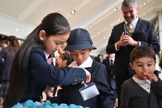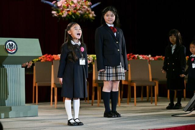 4月7日、桜がきれいに舞う中、入学式が行われました。期待に胸を膨らませた142名の玉川っ子を迎えました。5年生が、受付から司会進行、祝辞、新入生のエスコートまで張り切って担当しました。1年生もステージ上で元気にいっぱいに返事をすることができました。在校生(2〜5年生)の温かい歓迎の歌声、オーケストラの演奏、大きな拍手に包まれた素敵な入学式となりました。式終了時には、和やかなムードの中、クラス毎に記念撮影が行われました。「きれいな心、よい頭、つよい体」の玉川っ子になる目標を心に刻み、新しい学校生活のスタートを切りました。