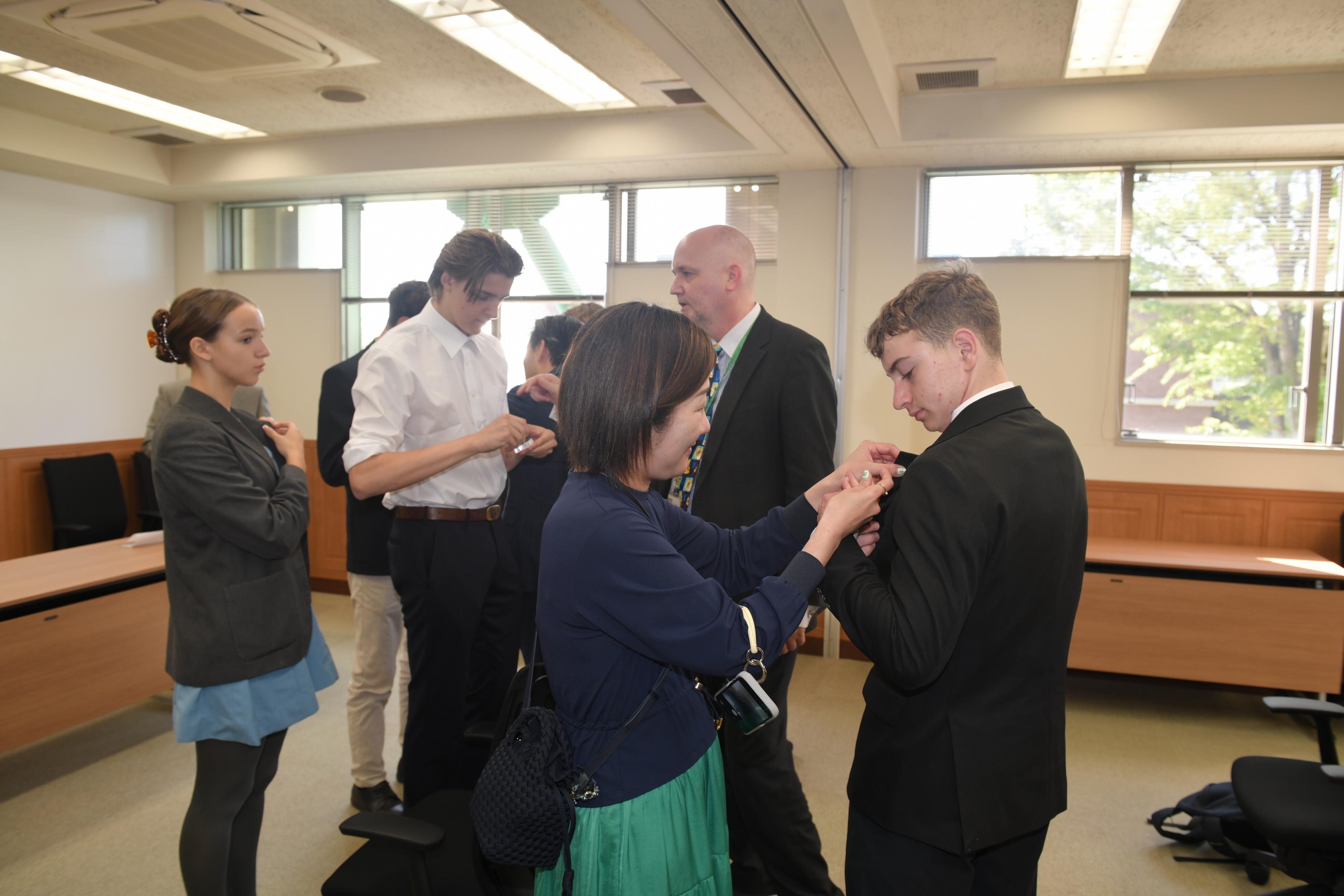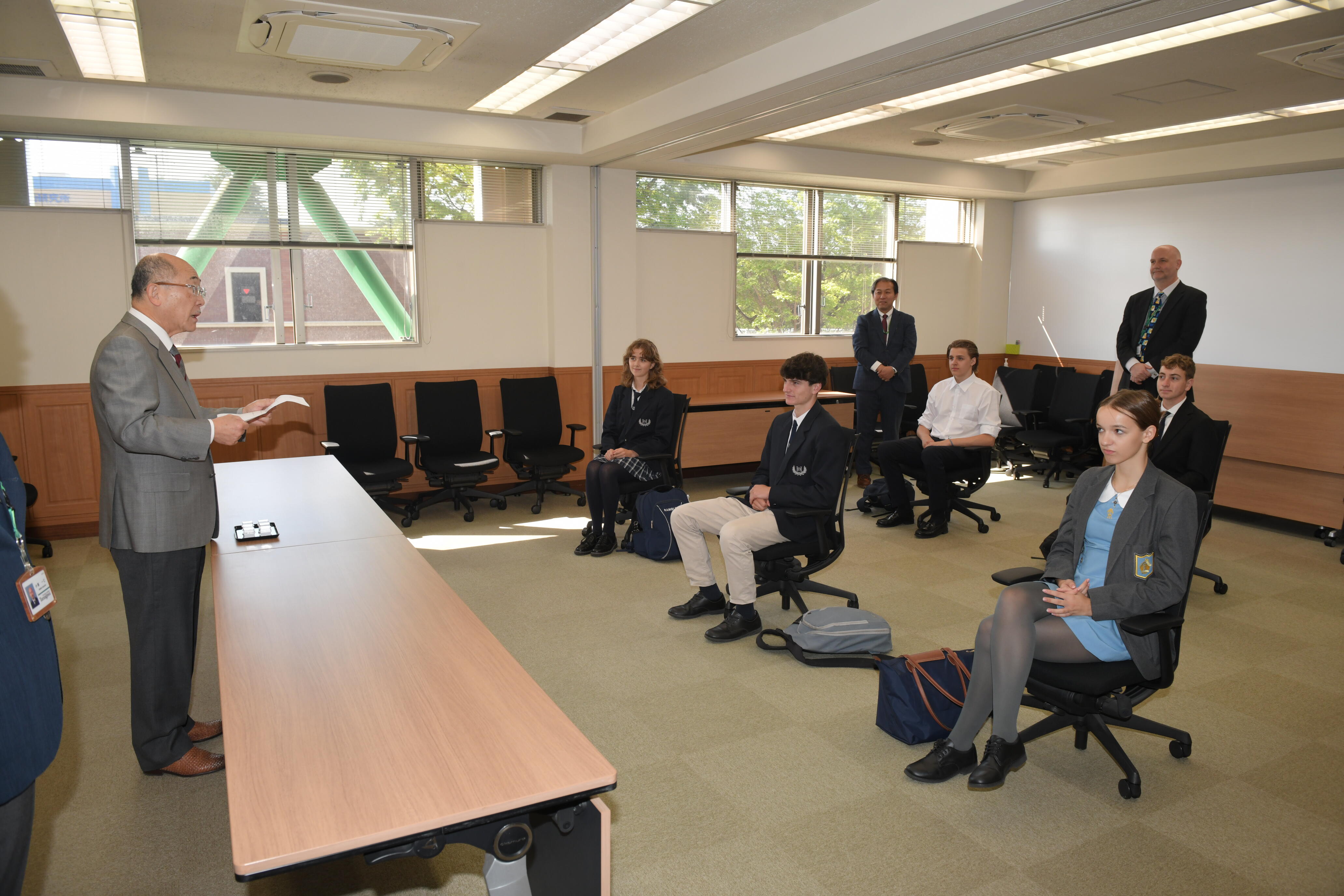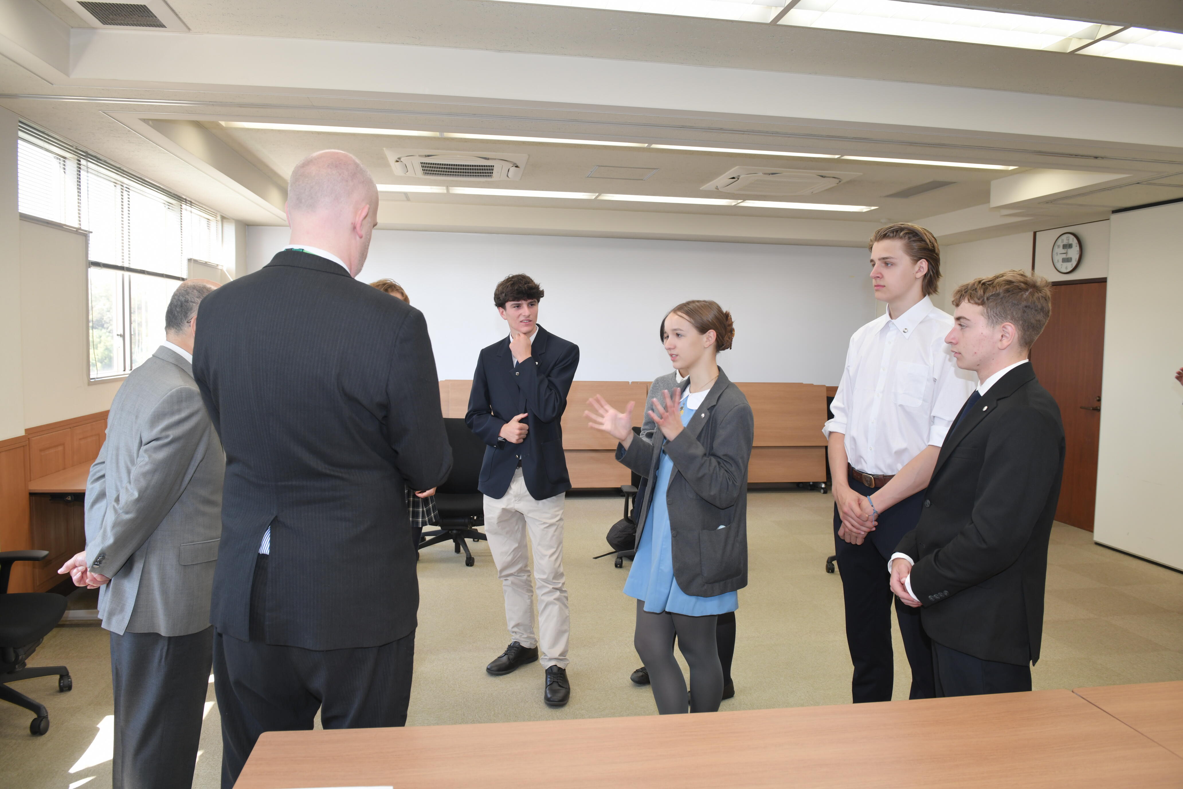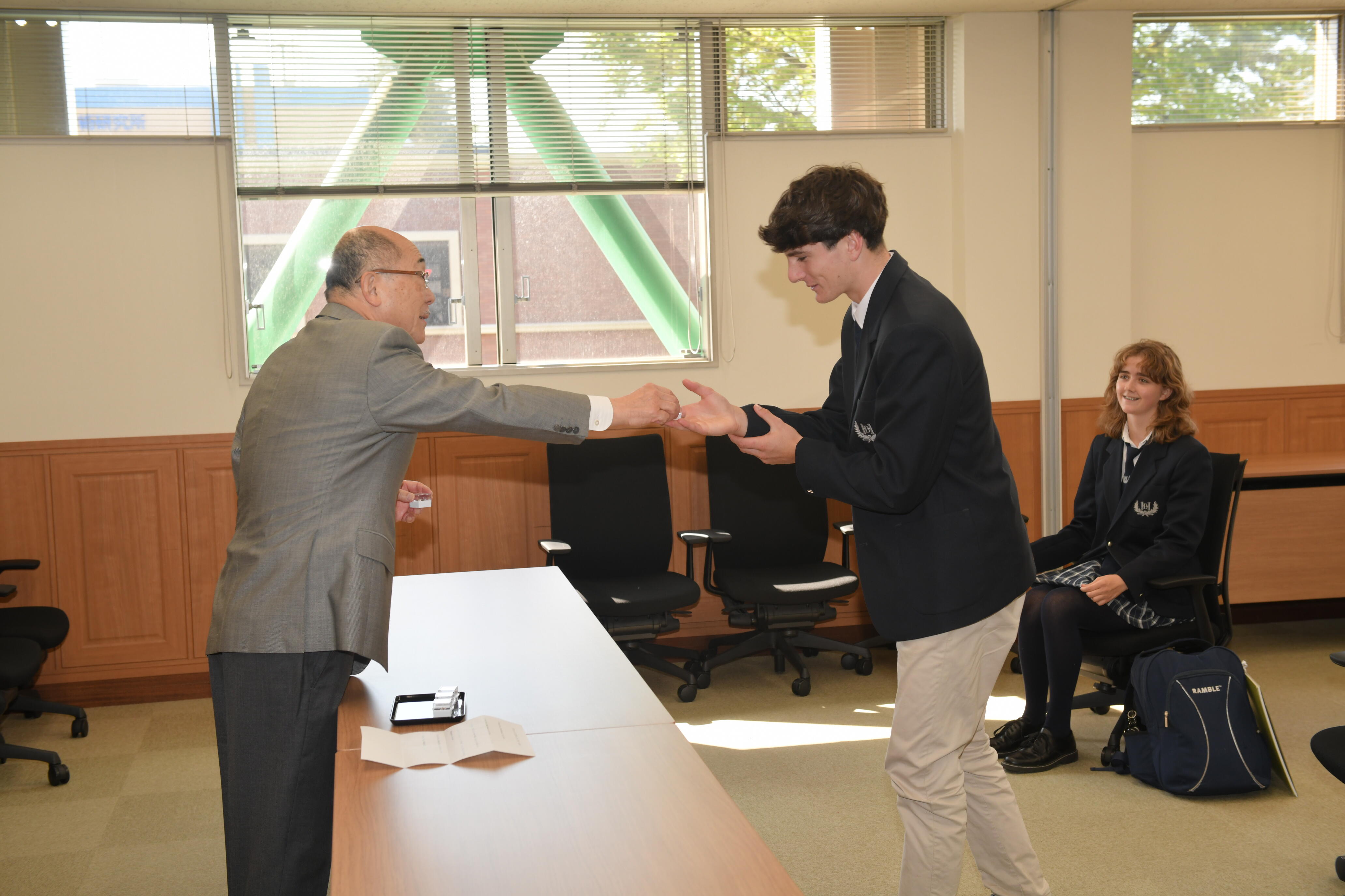 生徒たちは日々の授業に参加しながら、学びや文化の違いを越えて交流を深めています。4月16日には、留学生たちが学園長、副学園長を訪問しました。温かな歓迎の言葉とともに、玉川学園のバッヂが贈られ、留学生たちにとって心に残るひとときとなりました。学園長からは、「日本に滞在中、多くのことを経験して欲しい」とのメッセージが届けられました。異なる背景をもつ仲間とともに学ぶ経験は、教室での学習にとどまらず、多様な価値観を理解し、自らの視野を広げる貴重な機会となります。