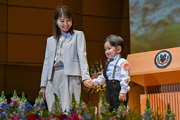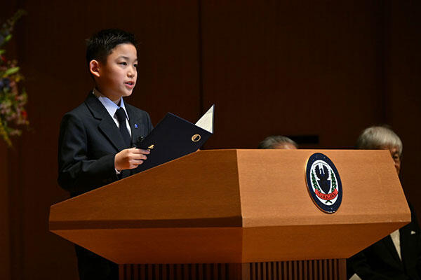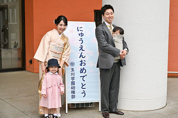 学内コンサートホールにて、令和8年度 Primary Division 幼稚部入園式を執り行いました。入園式の司会と祝辞を務めたのは、小学生のお兄さんとお姉さんです。新入園児の紹介の後は、歌やお祝いの言葉で新しい玉川っ子たちをお迎えしました。きれいな心、よい頭、強い体の3つの目標を目指して、玉川っ子たちの新しい生活が始まります。