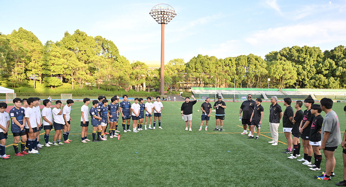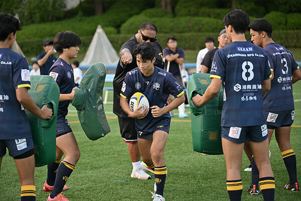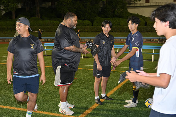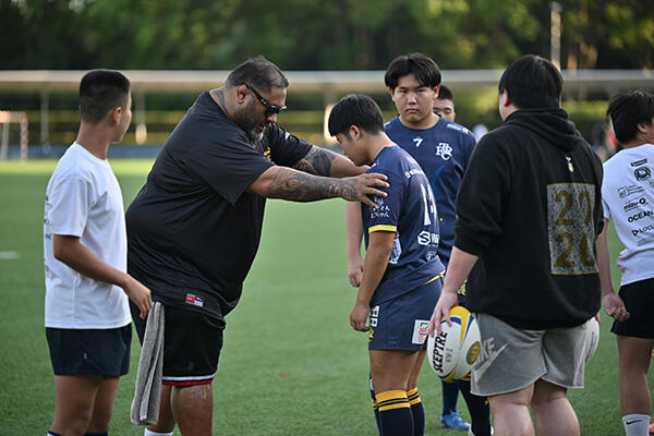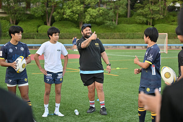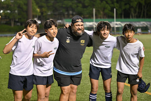 「元オールブラックスのNeemia Tialataさん、Piri Weepuさんに、さまざまな観点から指導してもらえてうれしかったです。短い時間の中で技術を自分のものにすることは難しかったですが、本物の選手から教わる機会はなかなかないので、新鮮な気持ちで臨むことができました。そして、オールブラックスとして世界と戦ってきたお二人の言葉には、とても重みがありました。今回のクリニックで教わったことを、これからの練習や試合でどんどん活かしていきたいと思います。Neemiaさんがおっしゃっていたように、ご飯をたくさん食べて、しっかり休養をとり、もっと大きくなりたいと思いました。」(荻久保 漣さん 9年生・中学3年生 中学部キャプテン)