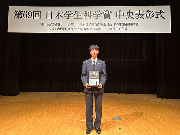 第69回日本学生科学賞で、サイエンスクラブ8年生 岡航生さんが「入選1等」を受賞しました。