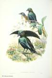 『オーストラリア鳥類図譜』『ニューギニアおよびパプア諸島鳥類図譜』『アジア鳥類図譜』などの地域の鳥類相全般を扱った著作においても上記の傾向が強く現れています。例えばオーストラリア産の大形オウム、美しいインコ類、ニューギニア産のフウチョウ類、アジア産のキジ類など特に羽色の美しいグループの鳥については、たくさんの種を採用し、図版の豪華さを誇っているのです。ここでは『ニューギニアおよびパプア諸島鳥類図譜』のフウチョウ類、『ハチドリ科鳥類図譜』を中心にまとめています。