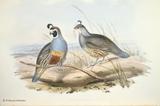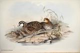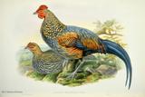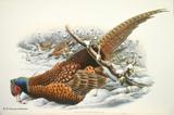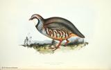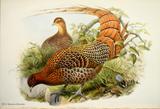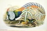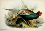 キジ目の鳥類は、(1)ツカツクリ科(19種)、(2)ホウカンチョウ科(50種)、(3)シチメンチョウ科(2種)、(4)ライチョウ科(17種)、(5)コリンウズラ科(32種)、(6)キジ科(155種)、(7)ホロホロチョウ科(6種)の7科281種の大きなグループです。ごく一般的に言えば、中位の大きさの、いわゆる猟鳥と呼ばれる地上性の鳥類と言えます。このグールプのうちホウカンチョウ科は南アメリカに、シチメンチョウ科は北アメリカに分布しているため、グールドの図譜シリーズには描かれていません。ホロホロチョウ科はアフリカに分布しますが、未完のIcones Avium(鳥の図譜)に一種だけ描かれています。ここでは、グールドの図譜に描かれたキジ目鳥類の中から、美しいもの、分類上の重要な20種を選んで紹介します。