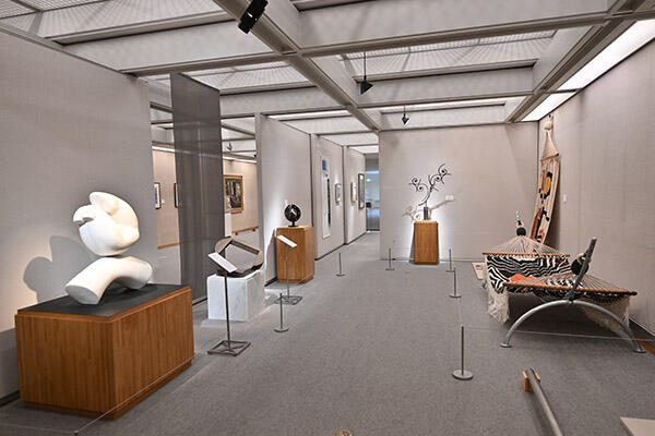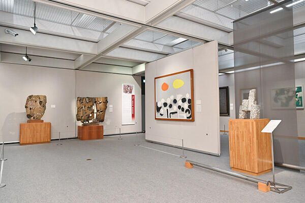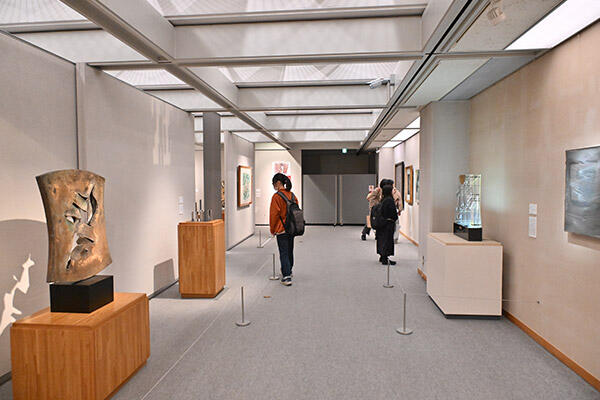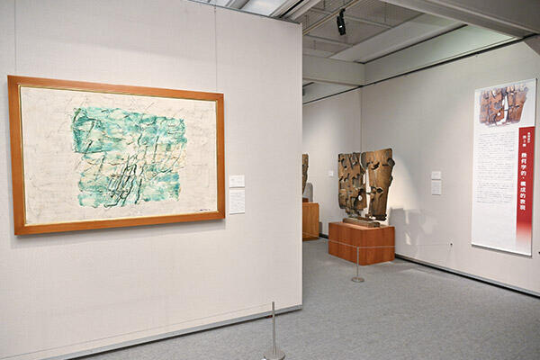 「藤澤氏によるコレクションの特徴の一つが、20世紀の作品が中心であることです」と語るのは、教育博物館の柿﨑博孝客員教授です。美術における20世紀は、多様な技法が生まれ、またアルミニウムやステンレス、アクリル板といった今までになかった素材が使われるようになるなど、さまざまな表現が一気に開花した時代でもあります。たとえば『植物』(1963)を描いたジャン・フォートリエ(1898―1964)は、アンフォルメルと呼ばれる抽象絵画の第一人者として知られた画家です。今回の企画展ではこうした表現の様相をもとに、前・後期に分けて9つのテーマで展示しており、当時の美術の潮流をより深く理解することができます。