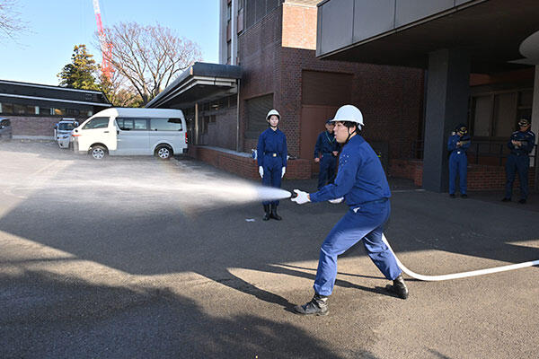 玉川学園では、12月11日(木)、令和7年度自衛消防隊による火災を想定した放水訓練を実施しました。