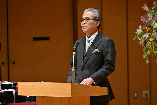 「ここにある証書は、みなさんの義務教育課程が修了することを証明します」と語りはじめ、「義務教育ではなくなっても、私たち大人はみなさんを手放すことはいたしません」と深い信頼を言葉に込めました。そして、恩師の言葉を振り返り、最後に生徒を手放す(巣立つ)時の寂しさを話しました。
