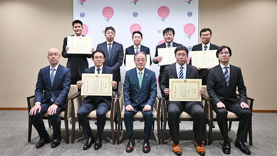【写真提供:町田市】授賞式にて ― 石阪市長(最前列中央)と受賞した町田の事業所の方々