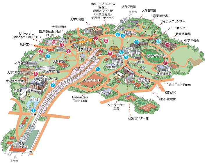 このマップは、キャンパスのさまざまな場所に設置されている石碑や像について、制作された理由や石碑に刻まれた文字の意味などを説明したものです。これらの石碑や像に込められた想いは、今でも私たちに伝わってきます。