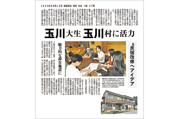 玉川村×玉川大学の空き家活用プロジェクトが『福島民友新聞』に掲載されました