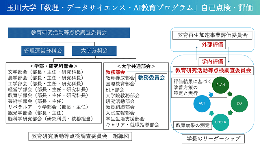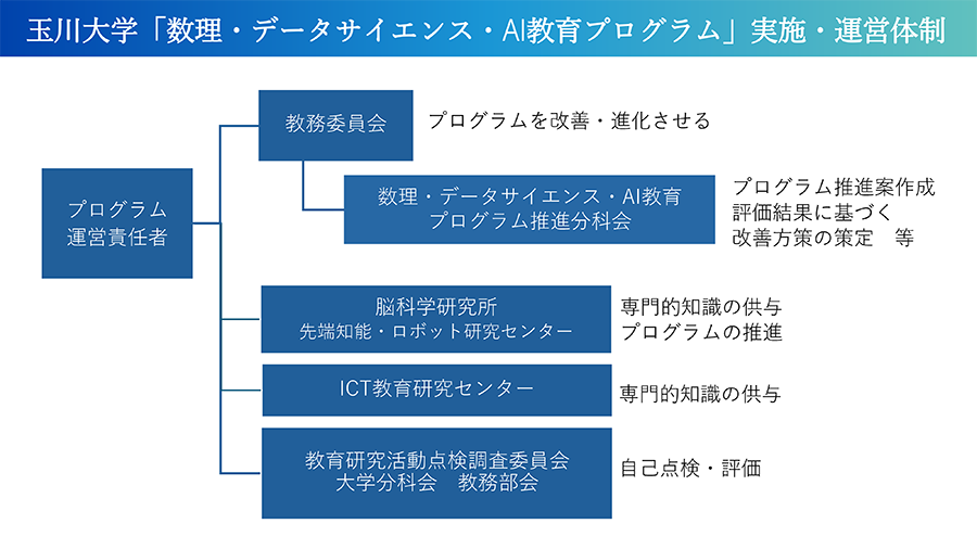 異分野融合のイノベーションを創出する人材を育成するESTEAM教育を推進している玉川大学は、全学部全学科を対象に、データサイエンス・人工知能(AI)に関する知識及び技術について体系的な教育プログラムを設けているとして文部科学省「数理・データサイエンス・AI教育プログラム認定制度(リテラシーレベル)」に認定されています。