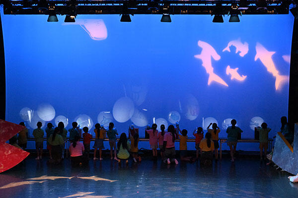 牛乳パックや虫眼鏡を使って「光の水族館」を制作。舞台照明の仕組みを学びながら、創造力を発揮しました。