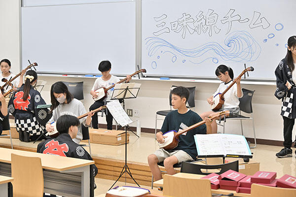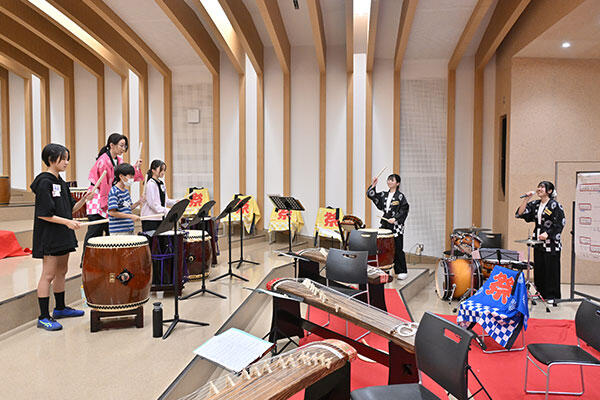 唄・踊り・三味線・和太鼓の各グループに分かれて体験し、最後には全員で演奏発表を行いました。日本の音楽文化への理解と親しみを深める貴重な機会となりました。