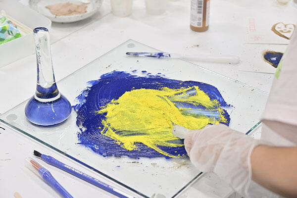 自然素材から絵の具を手づくりし、自由な発想で絵を描きました。ギャラリーウォークでは、作品と絵の具を陳列し、参加者同士で感想を語り合いました。