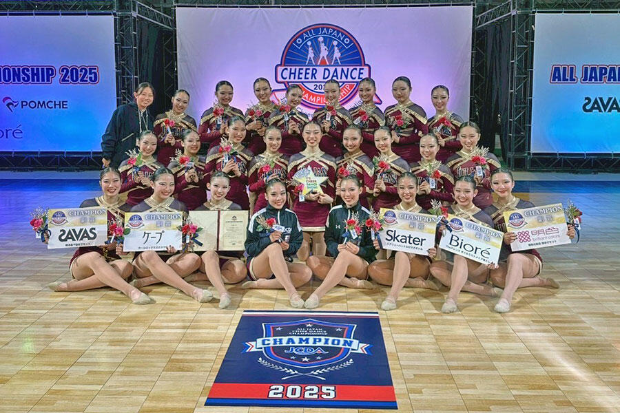 2025年11月30日(日)に「第25回全日本チアダンス選手権大会/第23回全日本学生チアダンス選手権大会」が東京都・東京体育館で開催され、体育会ダンスドリルチームが出場し、昨年度に引き続き、出場全部門において第1位優勝の三冠を達成。大学生編成については、本大会では16年ぶりのチャンピオンに輝きました!!